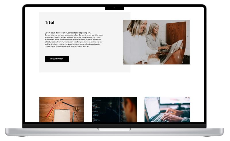 - Kant-en-klare website zoals op de afbeelding: Waarom tijd verspillen aan het bouwen van een website vanaf nul? Met onze standaard template krijg je direct een professioneel ogende website, klaar om de wereld te veroveren. Bekijk de afbeelding en stel je voor hoe jouw merk of idee er net zo indrukwekkend uit kan zien.
